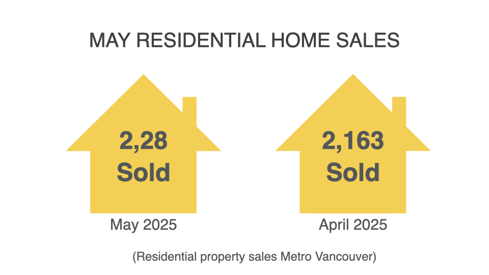 The Greater Vancouver REALTORS® (GVR) reports that residential sales in the region totalled 2,228 in May 2025, an 18.5 per cent decrease from the 2,733 sales recorded in May 2024. This was 30.5 per cent below the 10-year seasonal average (3,206).